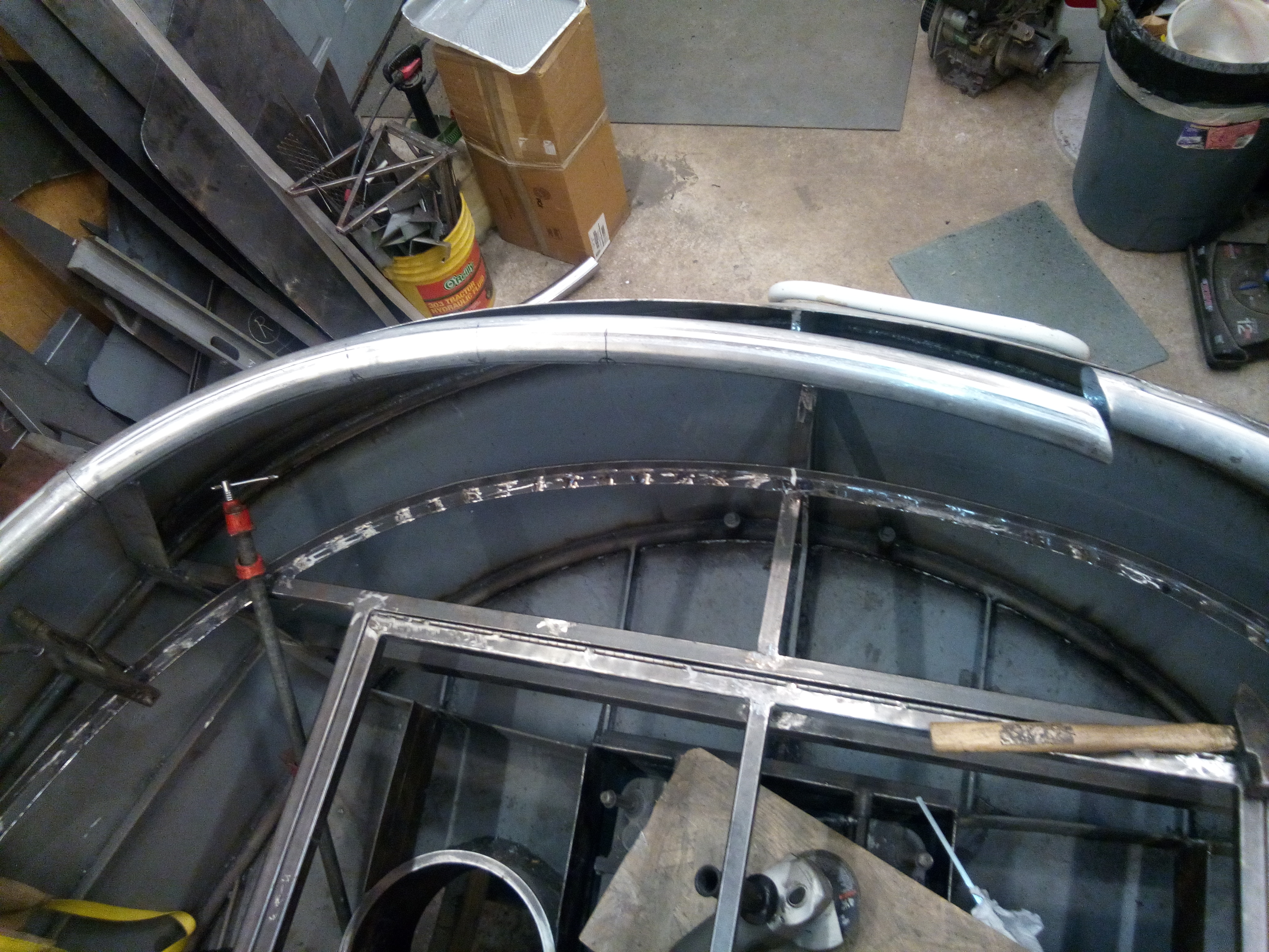 "Floater joint" ready to weld after the outer skin is fully welded to the top rail.