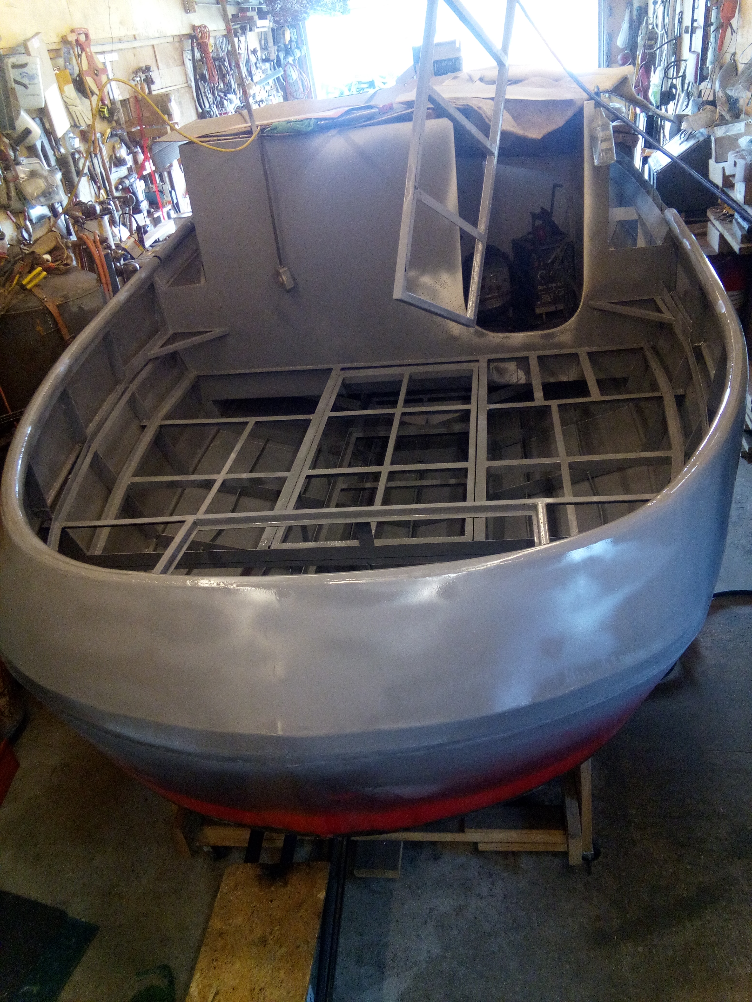Then I cut and welded in the inner structure so I would have a more finished look to the outer parts of the tug. This will also make it easier to seal up the boat from inclement weather.