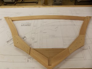 - October 28, 2015 - Cut Pieces for Frame #5 and final fit. I didn't like the fit of some of the pieces and decided to remake some of Frame #5. It is important to have the frames as close to the pattern as possible (within 1/32 or less). 1 hour