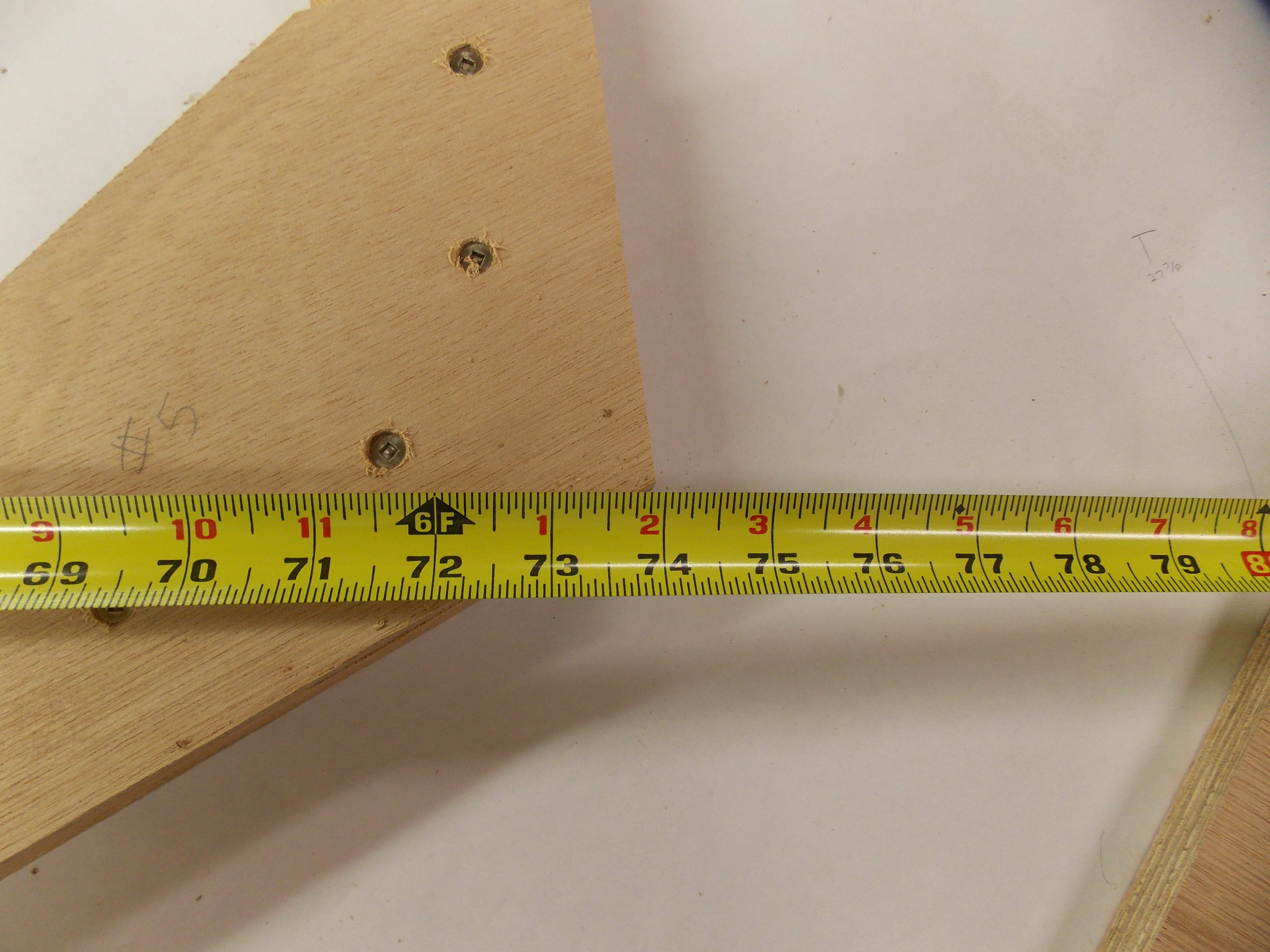 - November 10,2015 - Added support to the motor stringer supports on the dolly to ensure they are rigid. Also noticed that when I move the dolly to a different location in the basement, the dolly flexes a little due to the floor not being absolutely flat. When I moved the dolly to a different area in the basement, there were small gaps under the motor stringers at the middle supports. I moved the dolly back to the build location and everything was back to flat and straight. I marked the floor to ensure I build it in the same spot each time I move it. I cut the taper into the ends of both motor stringers. I am ready to start adding the frames. 1-1/2 hours