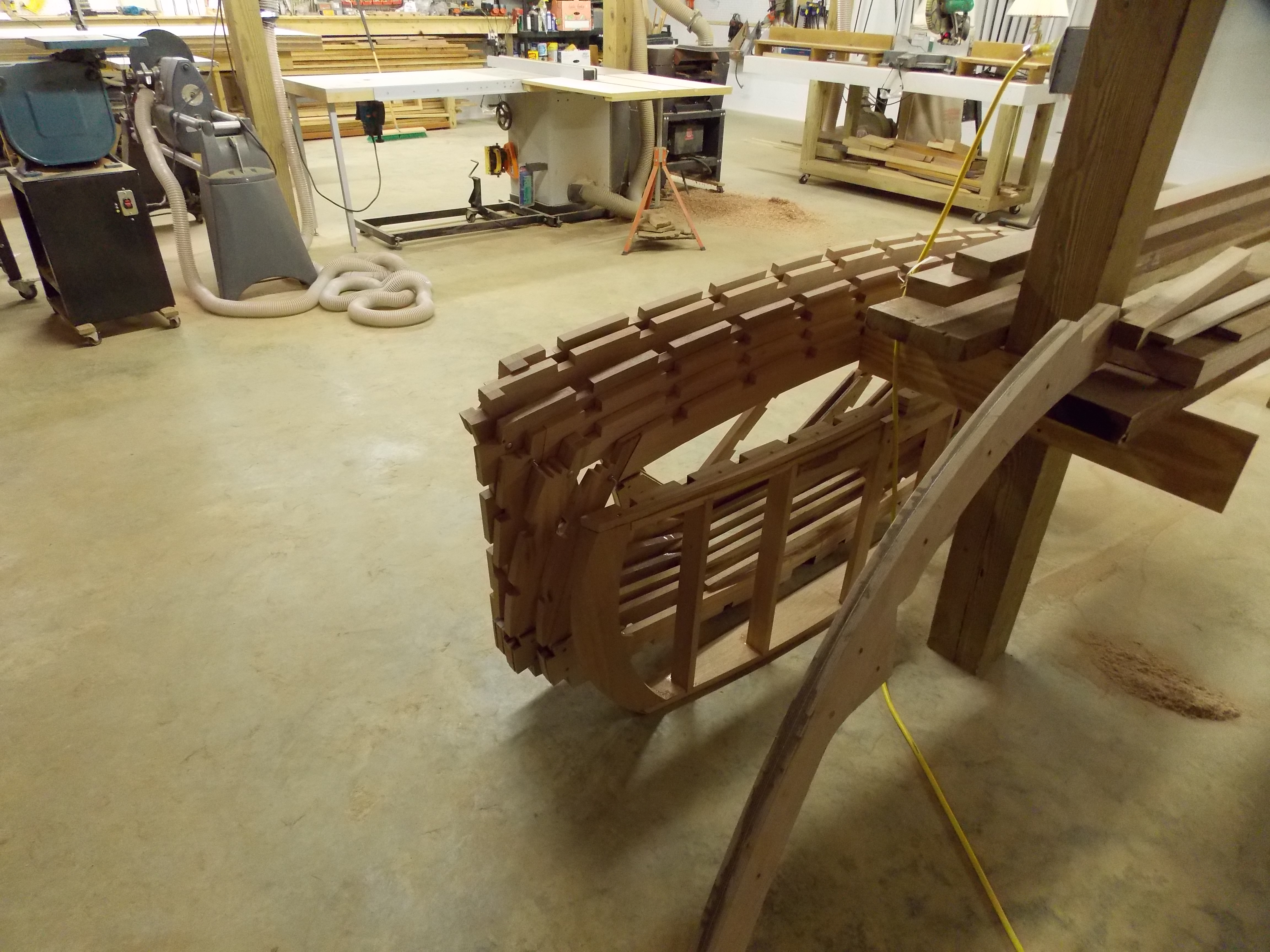 - October 19, 2015 - Fit Transom Center Support that is notched into the Top Beam and the Floor Timber. Final Fit all Pieces. 1 Hour