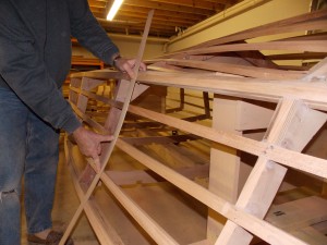 Second Port side sheer lamination. Third port side batten and first starboard side battens installed.